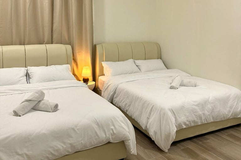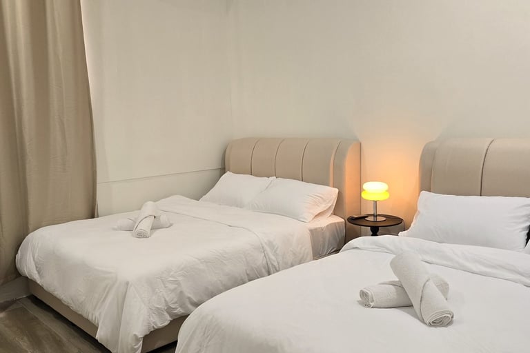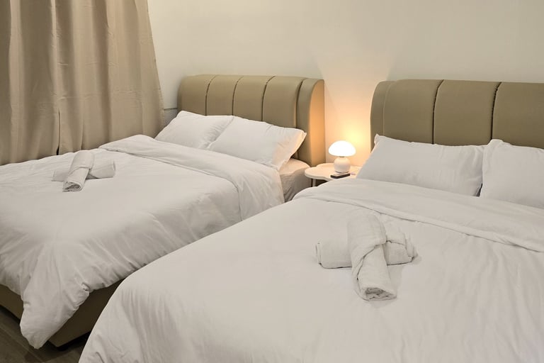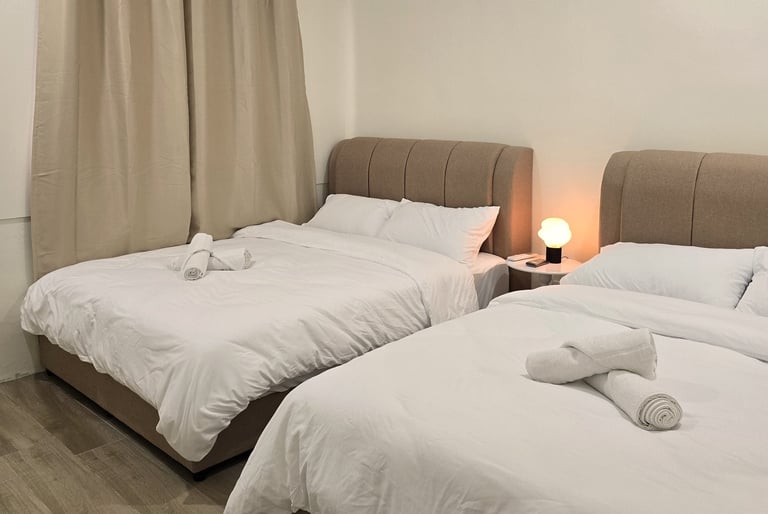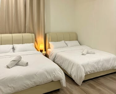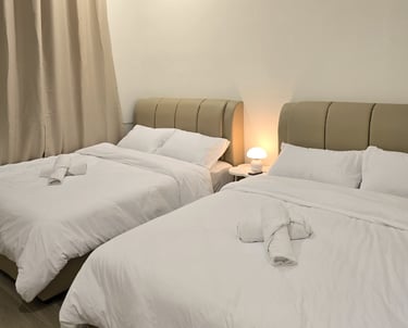 We provide all our guests with fresh towels, and our beds are hotel-grade for ultimate comfort. Each room includes a clothes rack for convenient storage during your stay. All rooms are equipped with air conditioning and two queen-sized beds, accommodating up to 16 guests comfortably.